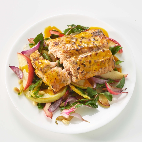 Two Wild Alaskan Salmon fillets fire-roasted with a smoky Applewood and sweet maple flavored glaze.